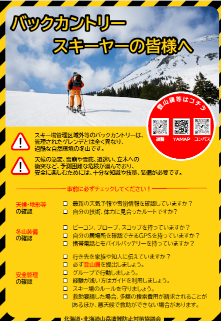 服装や装備などの準備を万端するとともに、この季節は特に雪崩にご注意ください。
