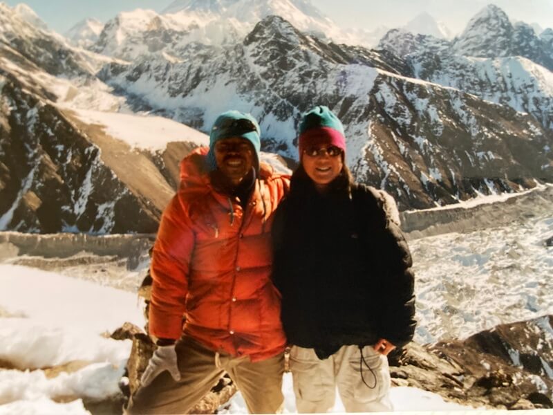 エベレストでトレッキングをする近藤さんと真実さん(提供写真)