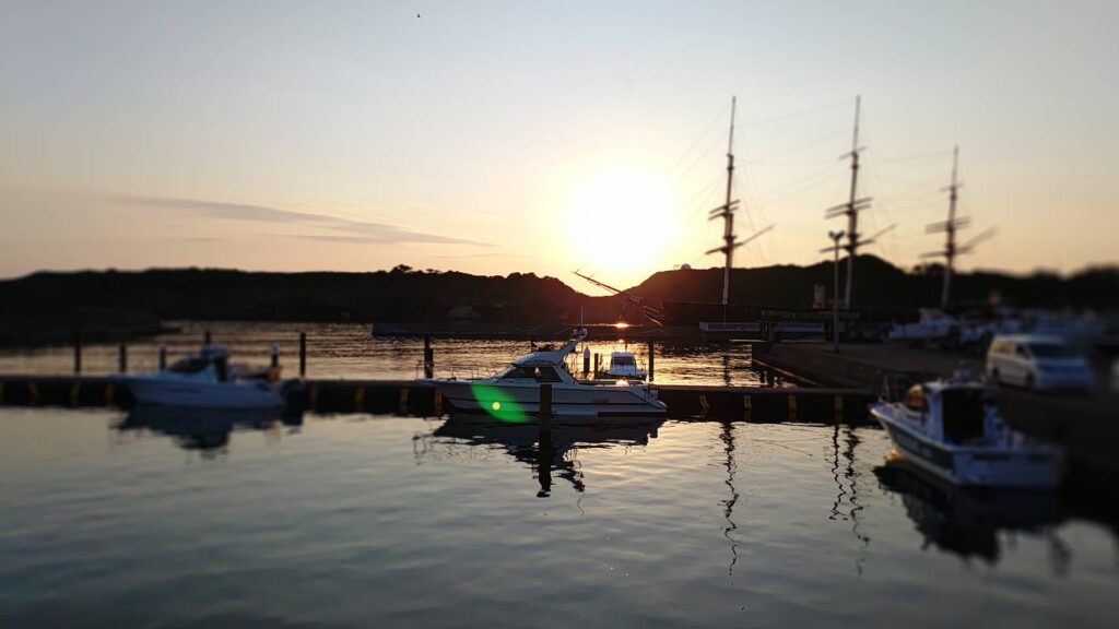さらに進むとかもめ島が!天気が良いとこんなに素敵な夕日が見られるんだ♪