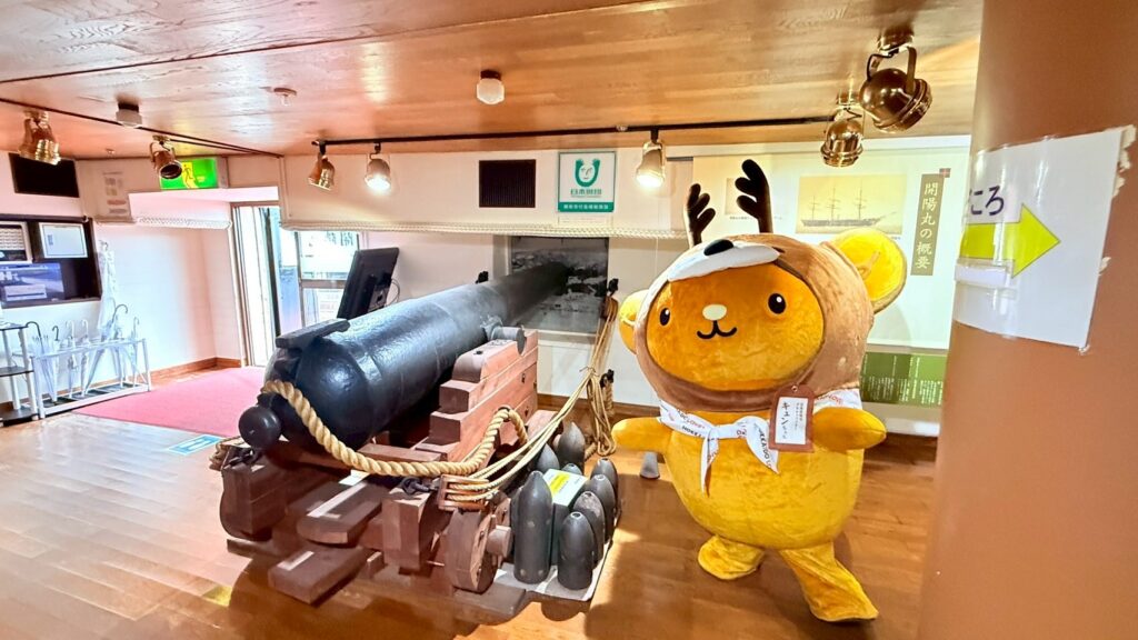 艦内には大きく分けて3種類の海底から引き揚げられた本物の大砲が展示されているんだ☆