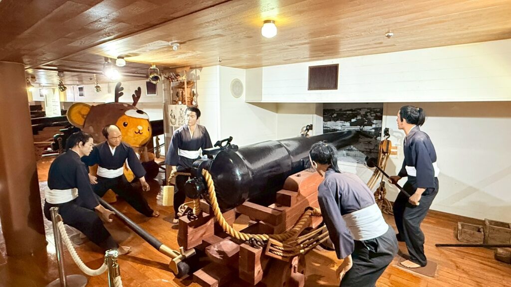 艦内には大きく分けて3種類の海底から引き揚げられた本物の大砲が展示されているんだ☆