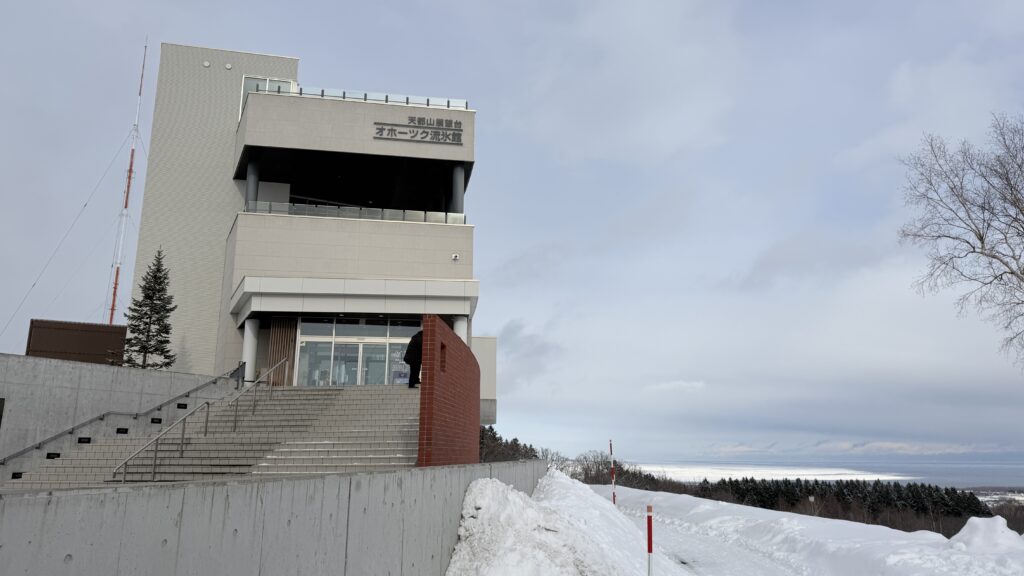 【13:00】「どこバス」を利用して、次は「オホーツク流氷館」へ。この日はなんと「流氷」が見えました!