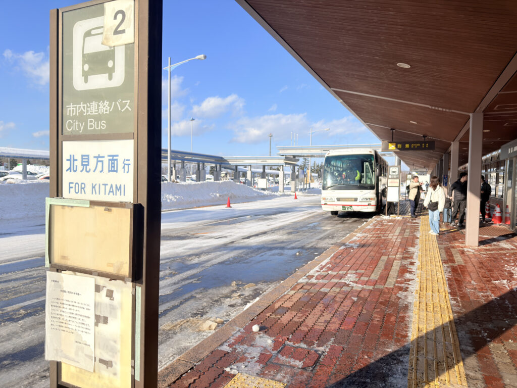 バスに乗車して網走市内へ移動しましょう!バスの所要時間は約40分。網走市行のバスに細かな時刻表はなく、飛行機の到着に合わせてバスが待っていてくれていますよ✨