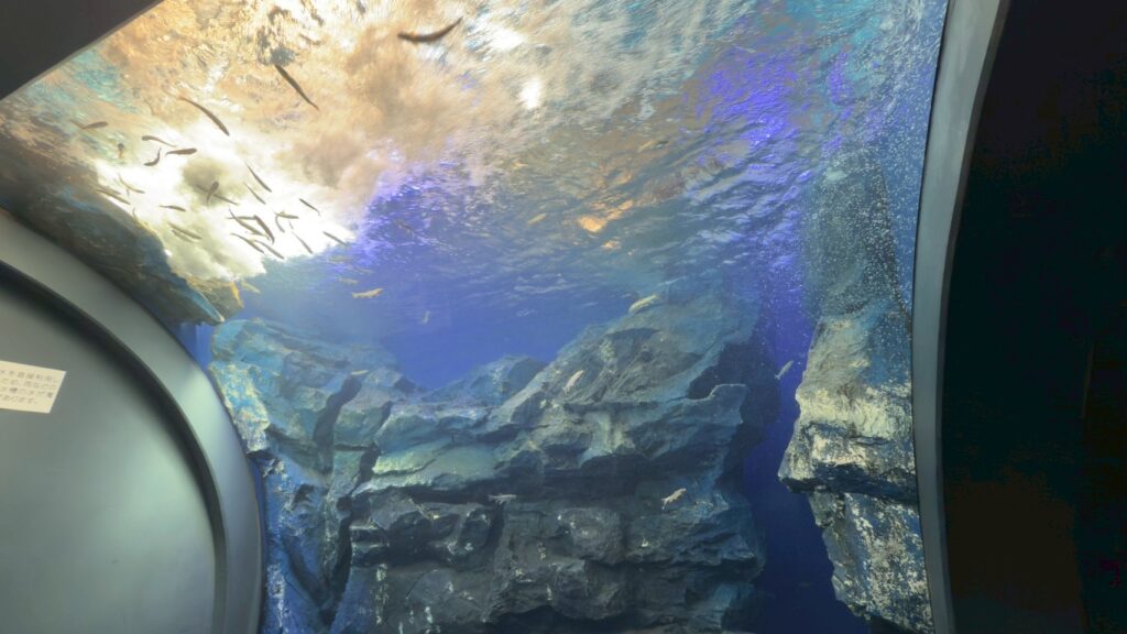 水族館に入ってすぐに滝つぼの水槽がお出迎え☆