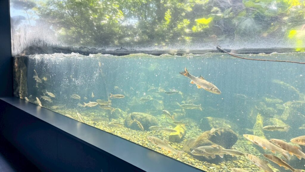 川を遡る魚さんたちにとって、滝は上流からの餌が落ちてくる貴重な場所でもあるんだって~!激流に流されまいと泳ぐ魚さんたちは、とっても力強かったよ✨