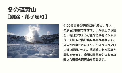 硫黄山も晴れの確率が比較的高い場所で、撮影には早朝の時間帯がオススメです。