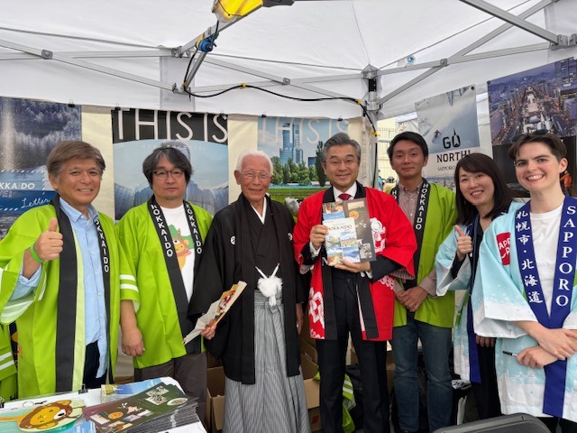 The HTO collaborated closely with the adjacent "Hokkaido Fine Foods" booth (run by the Hokkaido Society in the UK) to provide a unified showcase of Hokkaido’s rich culinary heritage and tourism assets. During the event, His Excellency Hajime Hayashi, Ambassador Extraordinary and Plenipotentiary of Japan to the UK, visited the booth to offer his encouragement to the staff and lend his support to the local promotion efforts for Hokkaido.