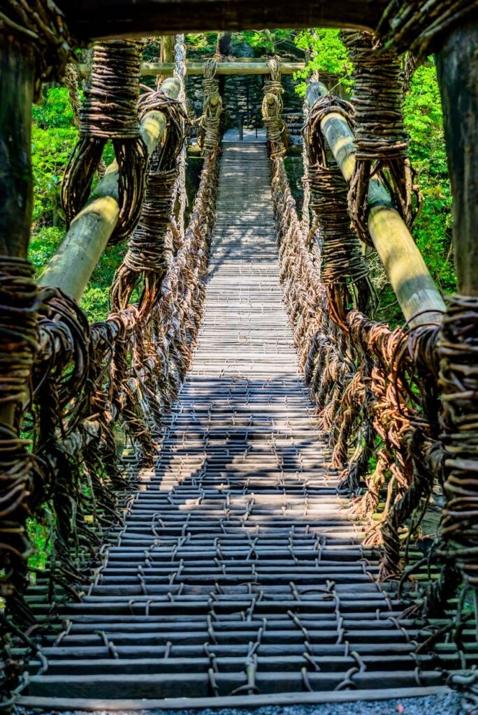 You’ll be spending the night at Iya Valley, a land of misty gorges and thatched-roof villages almost untouched by the modern world. Accommodation is at Hotel Kazurabashi – it’s the only hotel in this secluded valley. It also features a traditional open-air hot bath on a nearby mountaintop, which can only be reached by cable car – soak in its steaming rock pools with the entire valley spread out before you. The hotel is named after the Kazura Bridge, which is a short walk away. This narrow rope bridge hanging over the ravine is made from twisted mountain vines, and it’s one of the last natural bridges remaining in Japan. Cross it if you dare – you’ll see the water rushing 50 feet beneath you through the slats, so it’s not or the faint of heart! Dinner is a true taste of traditional village life. You’ll sit Japanese-style – on the floor – around low tables, each with its own traditional charcoal hearth, where local ingredients will be prepared in front of you.