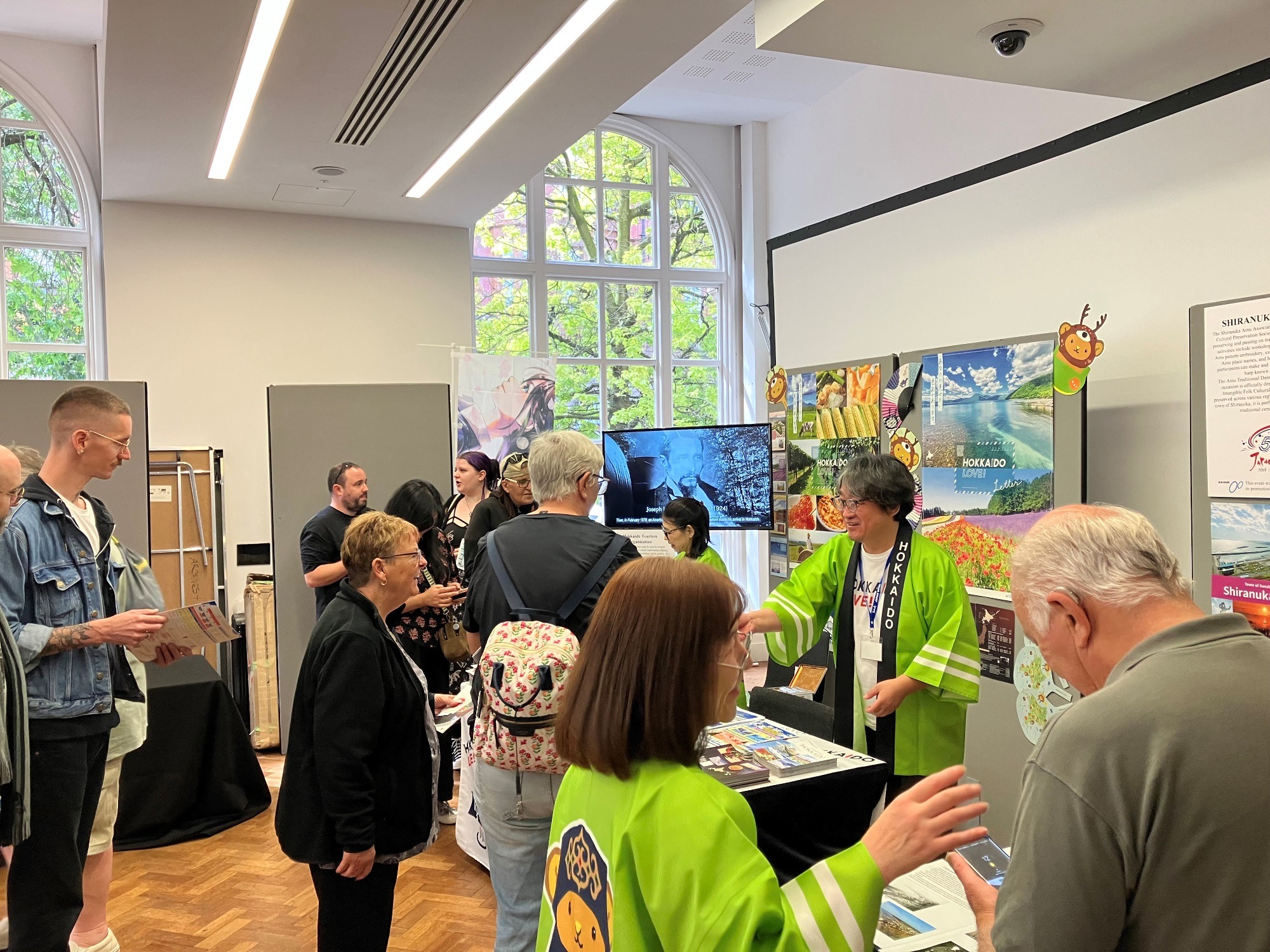 The main festivities then moved to Manchester, taking place at the historic Manchester Central Library, a landmark building dating back to the 1930s. The exhibition area featured booths from various organisations, including the Hokkaido Tourism Organisation, which used engaging visual displays to showcase Japan’s rich natural beauty and culinary culture.