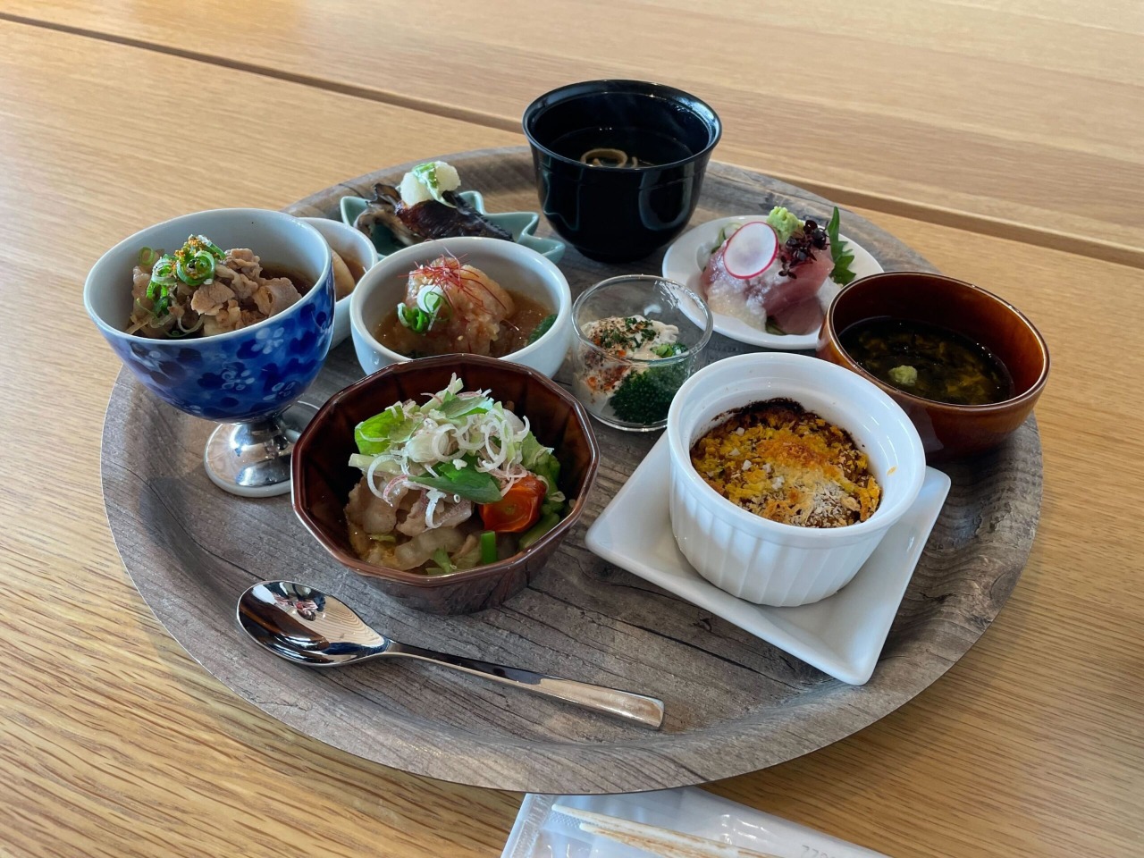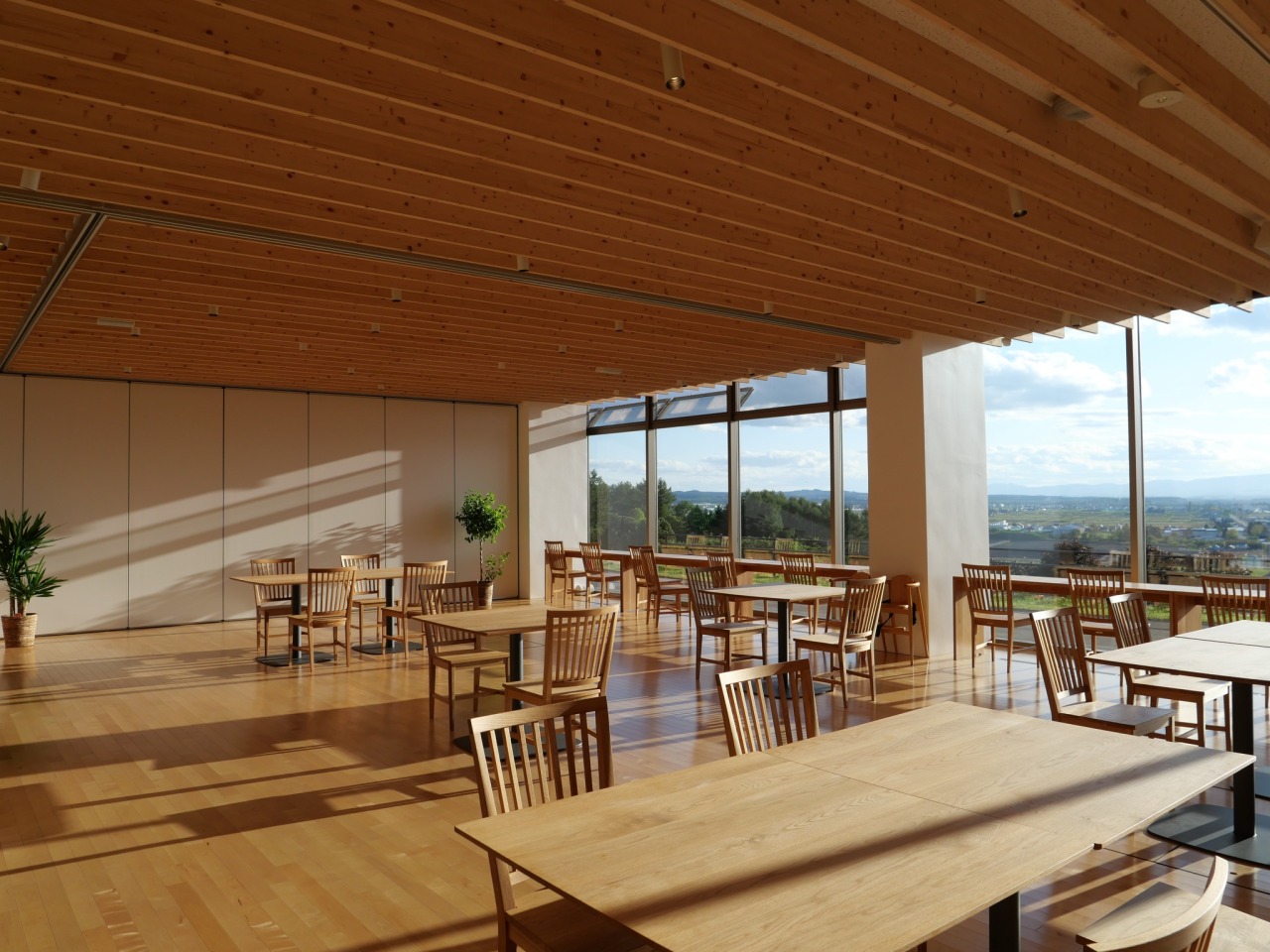 Perched on the scenic slopes of Mt. Kitoushi, Kitoushi Forest Kitoron is a striking hot spring resort that blends seamlessly into the surrounding landscape. Designed by world-renowned architect Kuma Kengo, the resort features warm interiors filled with the refreshing scent of wood and custom furniture crafted by local artisans from Higashikawa. At the first-floor restaurant, guests can savor dishes prepared with the town’s renowned pure groundwater and fresh vegetables sourced directly from nearby farms.