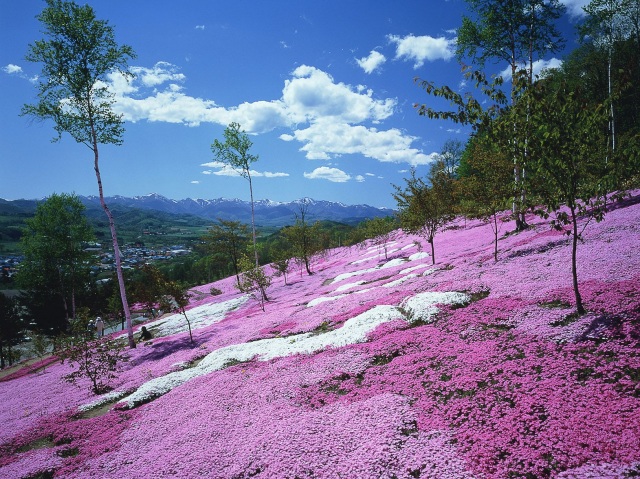 - みかん箱一つ分の苗からスタートした芝桜。60年以上かけて日本最大級ともいわれる10万平方メートルもの美しい芝桜の大群落になりました。あたり一面に広がる色鮮やかなピンクの芝桜を一目見ようと、毎年多くの観光客が訪れる人気スポットです。