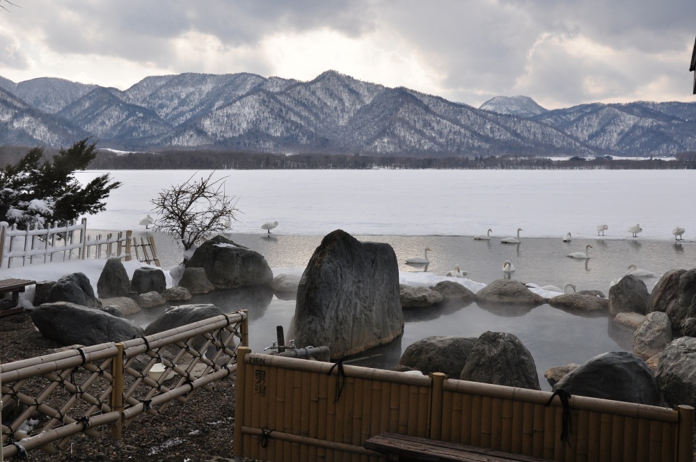 冬は温泉に浸かりながら白鳥ウォッチング!