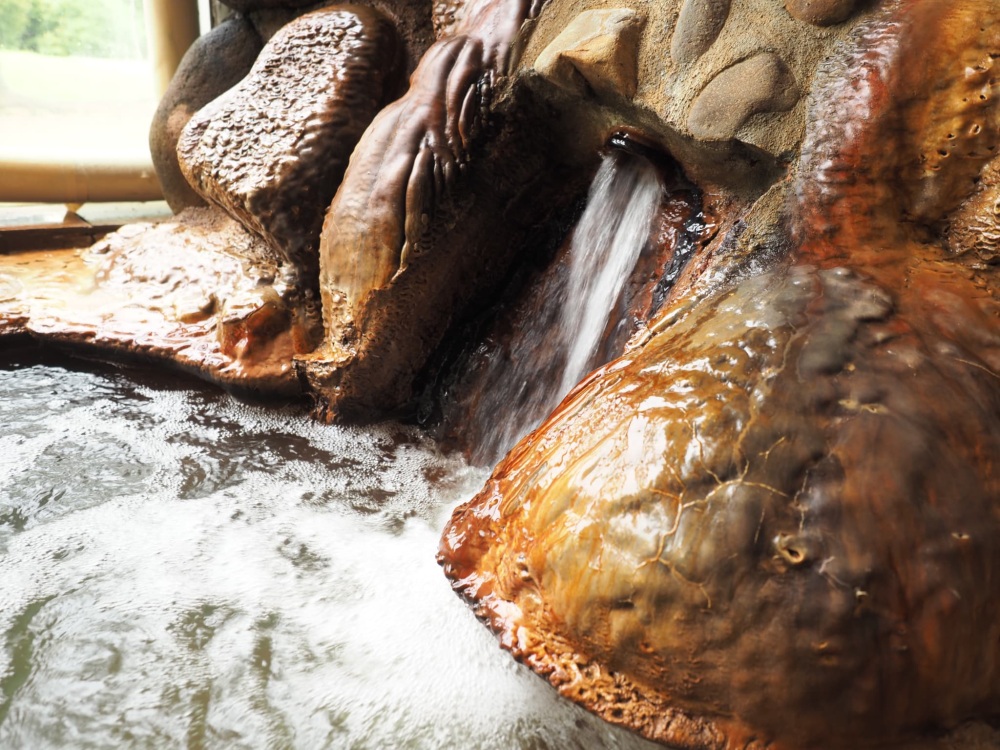 丸美ケ丘温泉は音更町の丘の上にある一軒宿です。大浴場で使っている温泉は、38.0度の単純温泉と47.9度のアルカリ性単純温泉の2本。どちらもモール温泉で、それぞれの源泉を単独でかけ流していますが、大半の人が38度の湯船を利用しているそうです。1度入ったら出るタイミングが難しく感じるほどの絶妙な温度で、熱い温泉よりも長い時間入ることができ、地元の常連客の会話も弾みます。