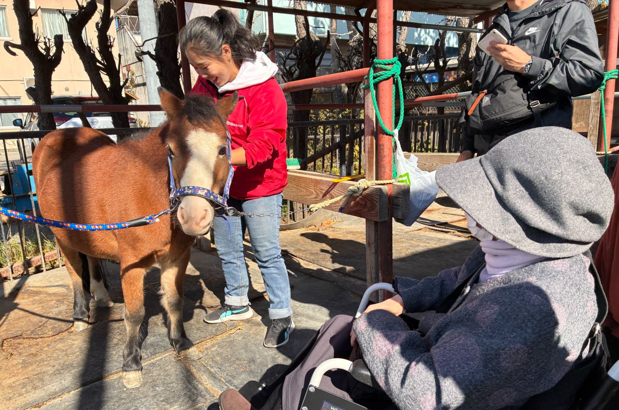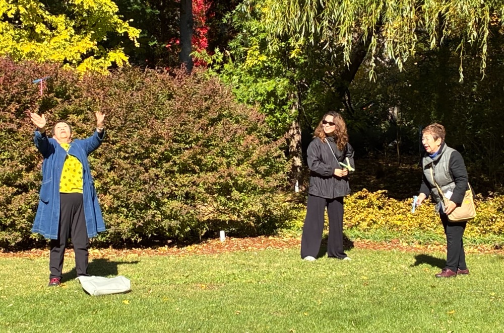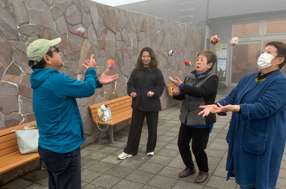 日本初のコニファーガーデンとして知られるこの庭園では、プラスチック製の竹とんぼを使った軽い運動と、車いすでも安全に参加できるロープストレッチプログラムを行いました。身体状況に応じて無理なく行える活動を通じて、笑顔や交流が生まれました。