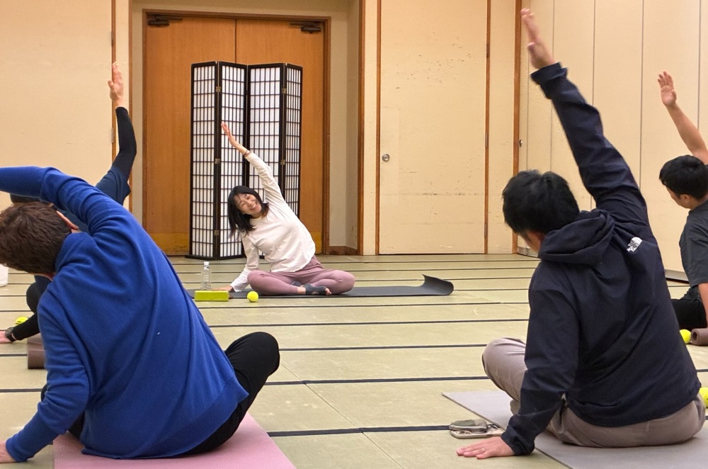 初日のレスパイトコースでは、上士幌町の「ナイタイテラス」を訪れ、筋膜はがしと脳活性プログラムを行いました。
