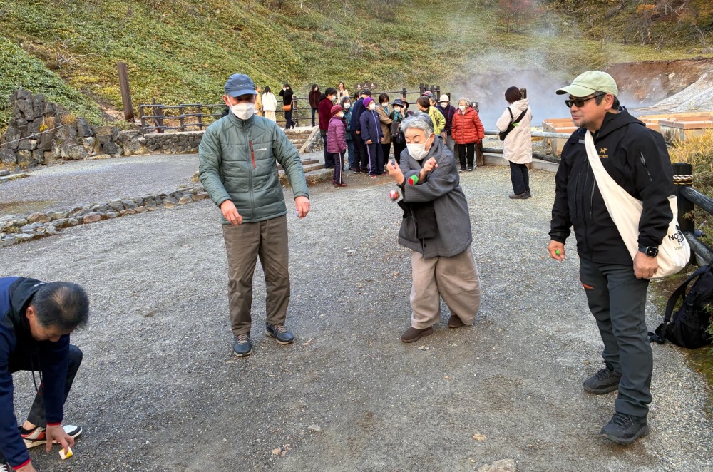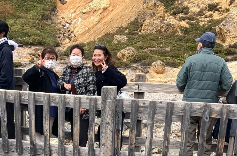 最後は、登別の代名詞「地獄谷」の散策です。車いすの参加者本人が「自分で歩いていく」と意思を示して、途中から自分の足で歩いて終点まで到達しました。