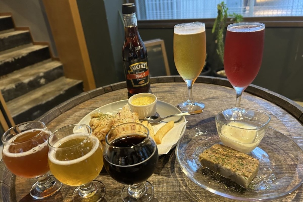 屋台が軒を連ねるように、和洋中さまざまな飲食店が入居する狸小路2丁目の「狸COMICHI」。狸小路に面した入り口すぐにあるのが、ニセコ町のヨーテイブルーイングなど北海道内の6種類のクラフトビールをそろえる「CRAFT PUB BRAIAN BREW」です。フィッシュ&チップスや、お客さんが自分でジャガイモをつぶして作るクラフトポテサラなどのフードも人気。クラフトビール初心者でも気軽に入れる雰囲気のお店なので、あれこれ楽しく試せそうです。
