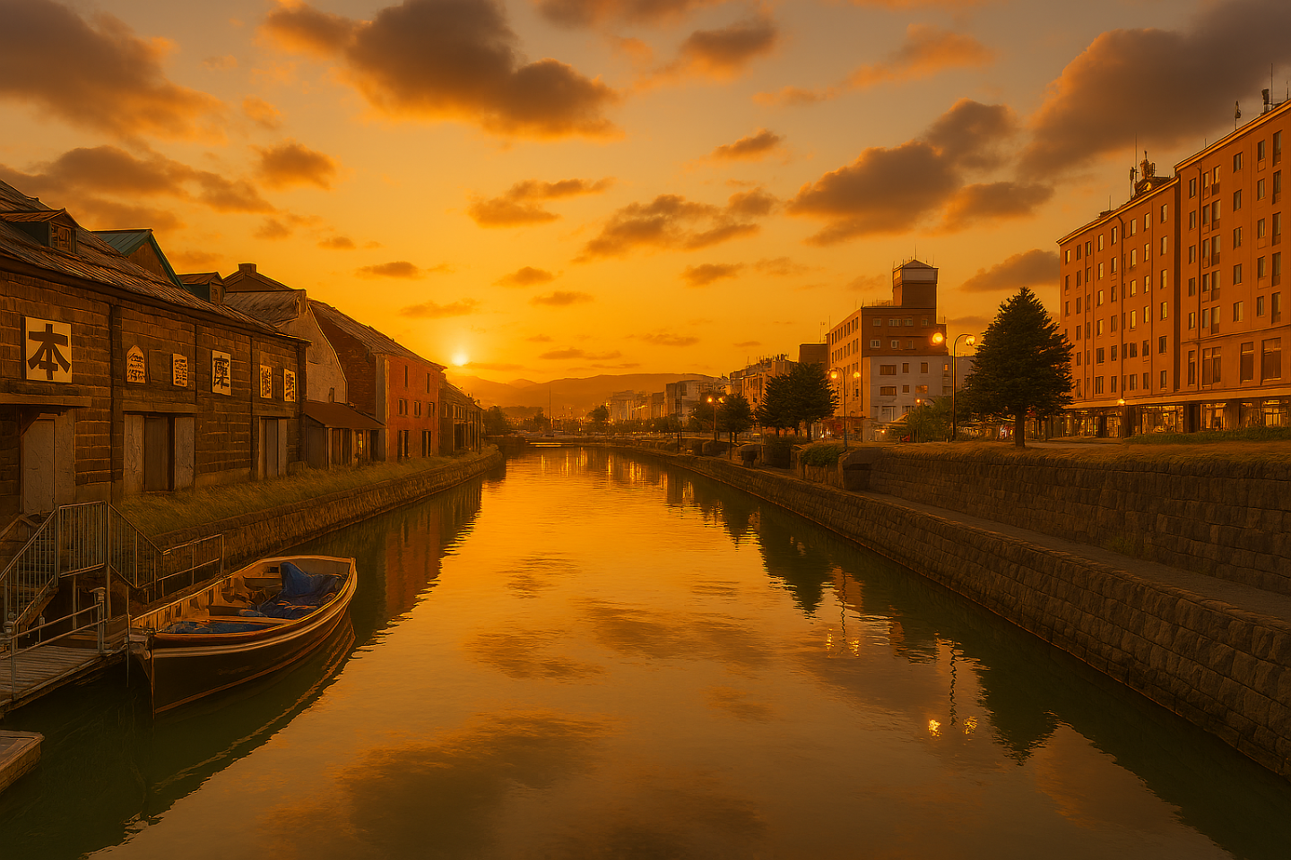 夕方5時ごろ、夕日が運河を黄金色に染め、街明かりが灯り始める時間帯は、小樽が最もロマンチックになる瞬間です。