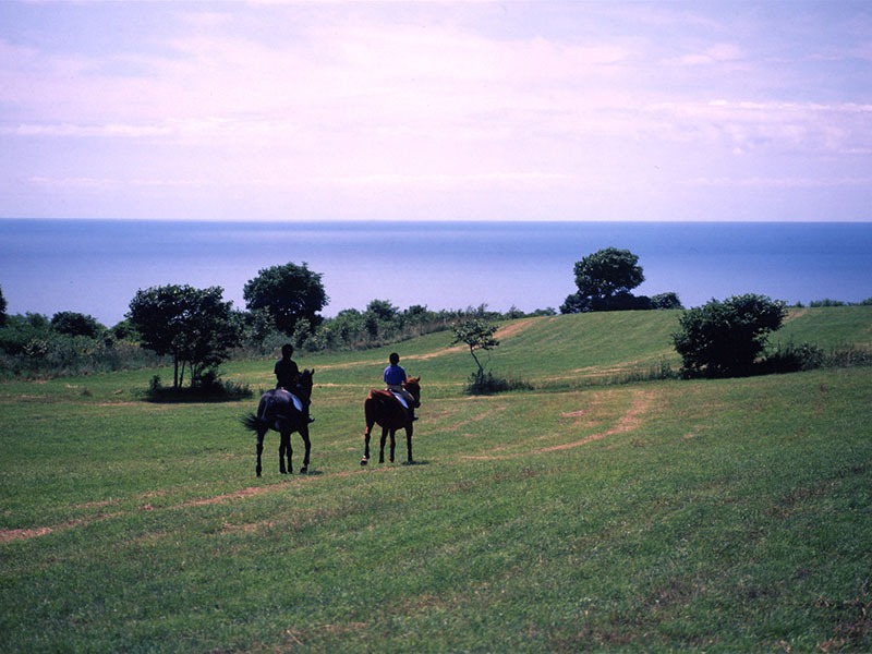 施設には、往年の名馬たちに出会える乗馬施設が併設されており、お客様の経験やレベルに合わせた多様な乗馬メニューを提供しています。