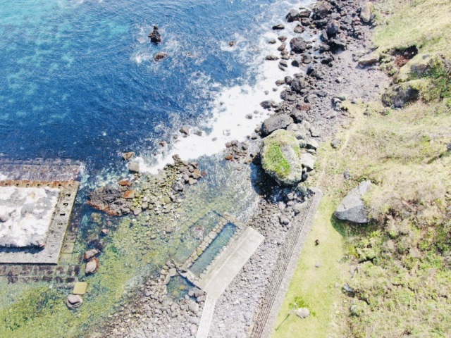 湯船の下の石の間から湧き出る温泉は、海水が混ざって適温になるのだそう。海と一体化しており満潮時は水没してしまうため、事前に函館市椴法華(とどほっけ)支所の公式サイトで入浴可能時間帯を確認してから訪れましょう。駐車場、脱衣小屋や公衆トイレが併設されています。