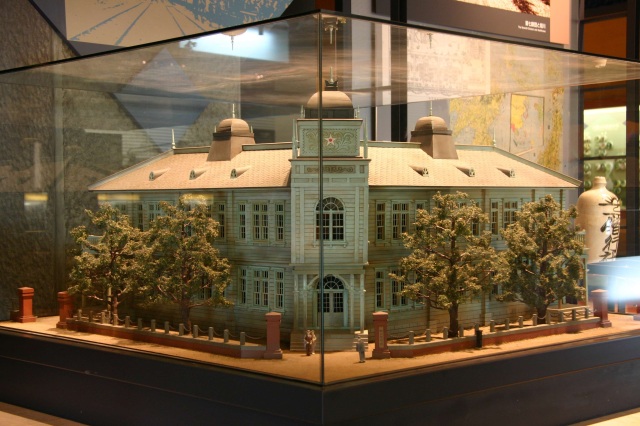 博物館のキャッチコピーは「アイヌの歴史と文化に出会う」で、北北海道の歴史や自然に関する貴重な資料を数多く展示しています。常設展示室1階の上層階では、先住民族アイヌの歴史と文化を詳しく紹介。アイヌの伝統的な住居「チセ」や古代の竪穴住居、明治以降の「屯田兵屋」が実物大で復元移築されており、当時の建築様式や生活用品から人々の暮らしぶりを忠実に感じることができます。