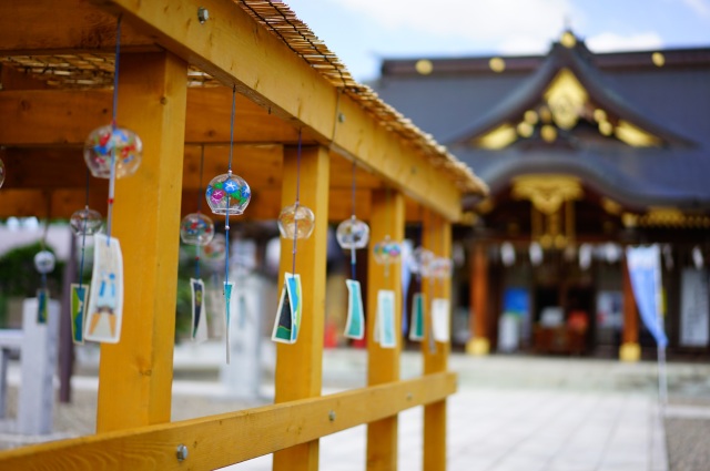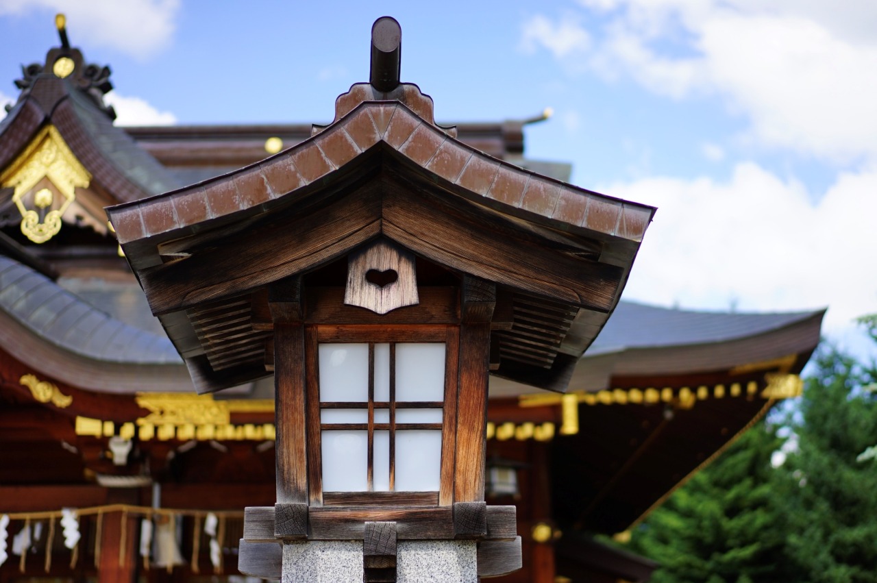 美瑛市街地に鎮座し、境内の伝統的な装飾が恋を導く神社